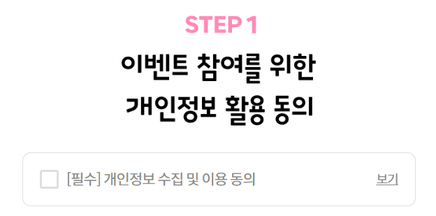 🔻그곳에 들어가서 먼저 이벤트에 참여하기 위해 개인정보 활용 동의 박스에 체크를 해준다.